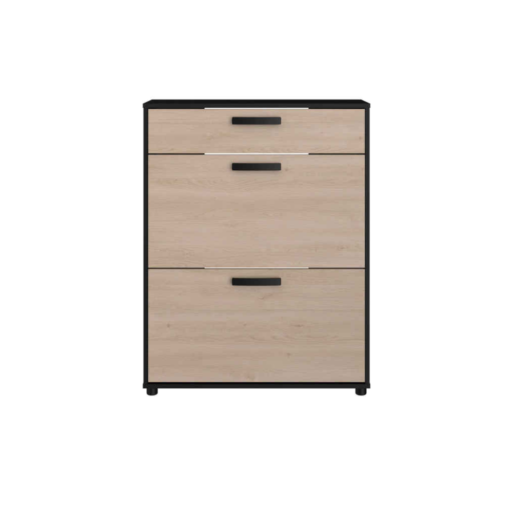 Derrière les deux portes, vous découvrirez un espace suffisant pour ranger soigneusement vos chaussures, les protégeant de la poussière et créant une atmosphère plus accueillante. Besoin d'espace supplémentaire pour des accessoires comme des gants ou des clés ? Le tiroir intégré offre un rangement pratique pour les petits objets. Mesurant L80cm, il est parfaitement dimensionné pour les couloirs ou les entrées plus petits sans compromettre la capacité de rangement.