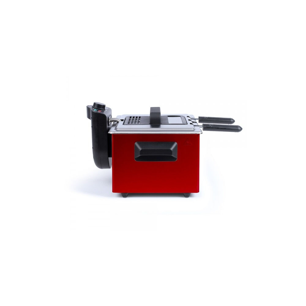 Nous savons que la sécurité est primordiale. C'est pourquoi cette friteuse est dotée d'une protection contre la surchauffe et d'un boîtier froid au toucher. De plus, le nettoyage est un jeu d'enfant grâce au panier de friture amovible et aux composants lavables au lave-vaisselle. La finition rouge vibrante ajoute une touche de style à n'importe quelle cuisine.