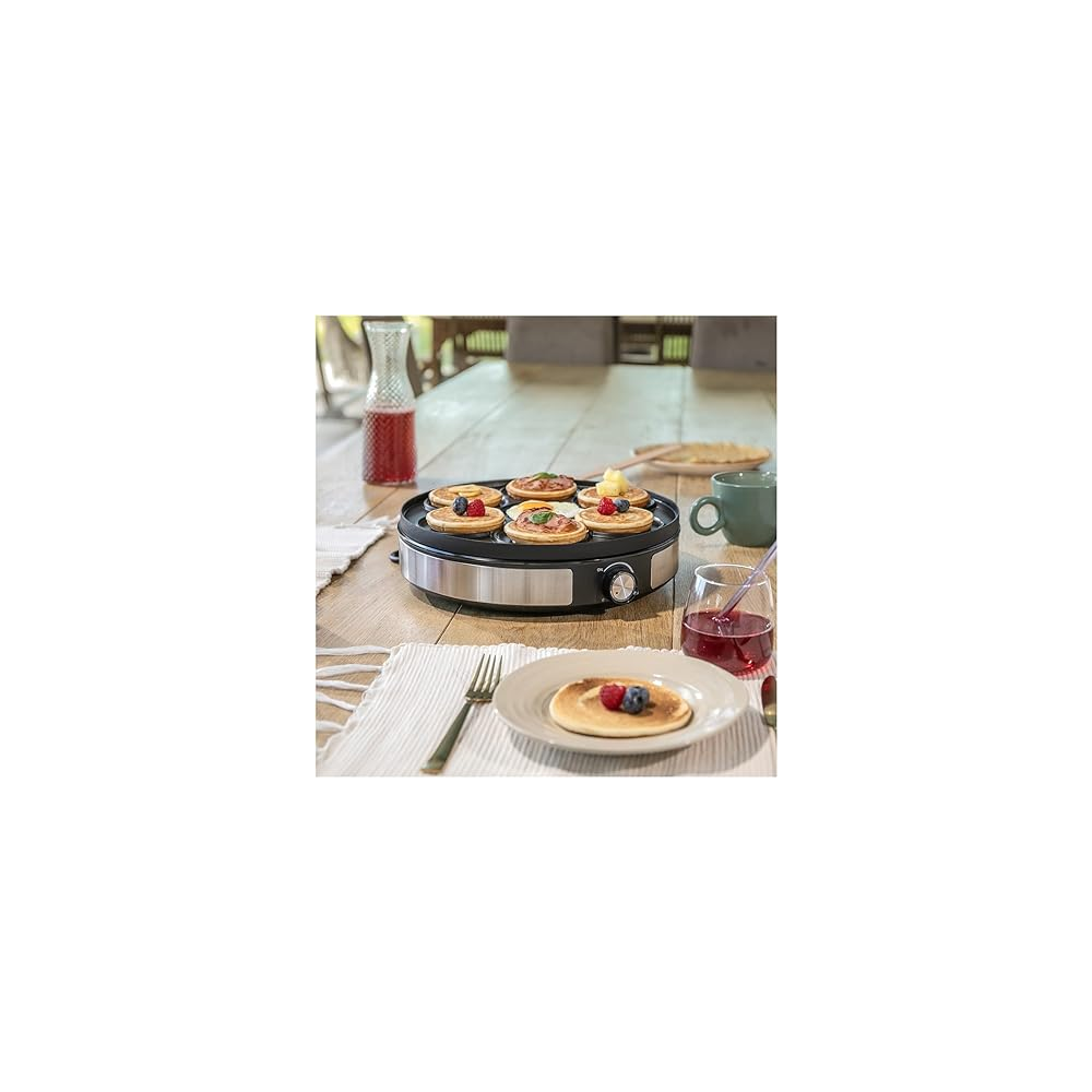 Cette puissante crêpière de 1500W chauffe rapidement et uniformément, garantissant ainsi une cuisson homogène et sans frustration. La plaque réversible offre deux surfaces de cuisson : une pour une grande crêpe unique (parfaite à partager… ou pas !), et l'autre divisée en sept sections pour créer d'adorables mini crêpes ou des pancakes de la taille d'une bouchée. Imaginez le plaisir que vous pouvez avoir avec les garnitures !