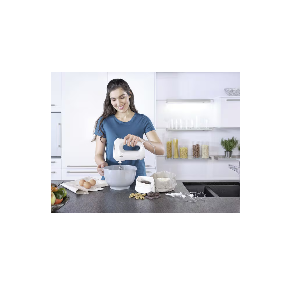 Vous cherchez un moyen fiable et efficace d'améliorer vos pâtisseries ? Choisissez le BATTEUR ÉLECTRIQUE MULTIMIX AVEC CROCHETS PÉTRISSEURS 4V +TURBO - BRAUN – nous vous garantissons qu'il deviendra une partie indispensable de votre routine de cuisine dans notre gamme de Robots Mixeurs Blenders et Hachoirs !