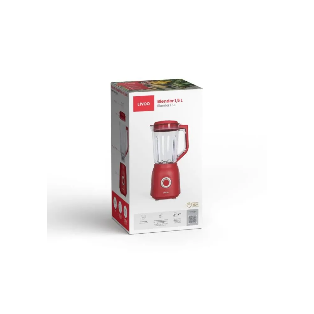 Il ne s'agit pas seulement de puissance ; nous avons conçu le Blender Livoo en pensant à votre confort. La généreuse capacité de 1,5L est parfaite pour préparer des repas pour toute la famille ou pour cuisiner en grande quantité vos recettes préférées. La finition saisissante Rouge ajoute une touche de style à votre plan de travail – car même les appareils de cuisine méritent d'être beaux !