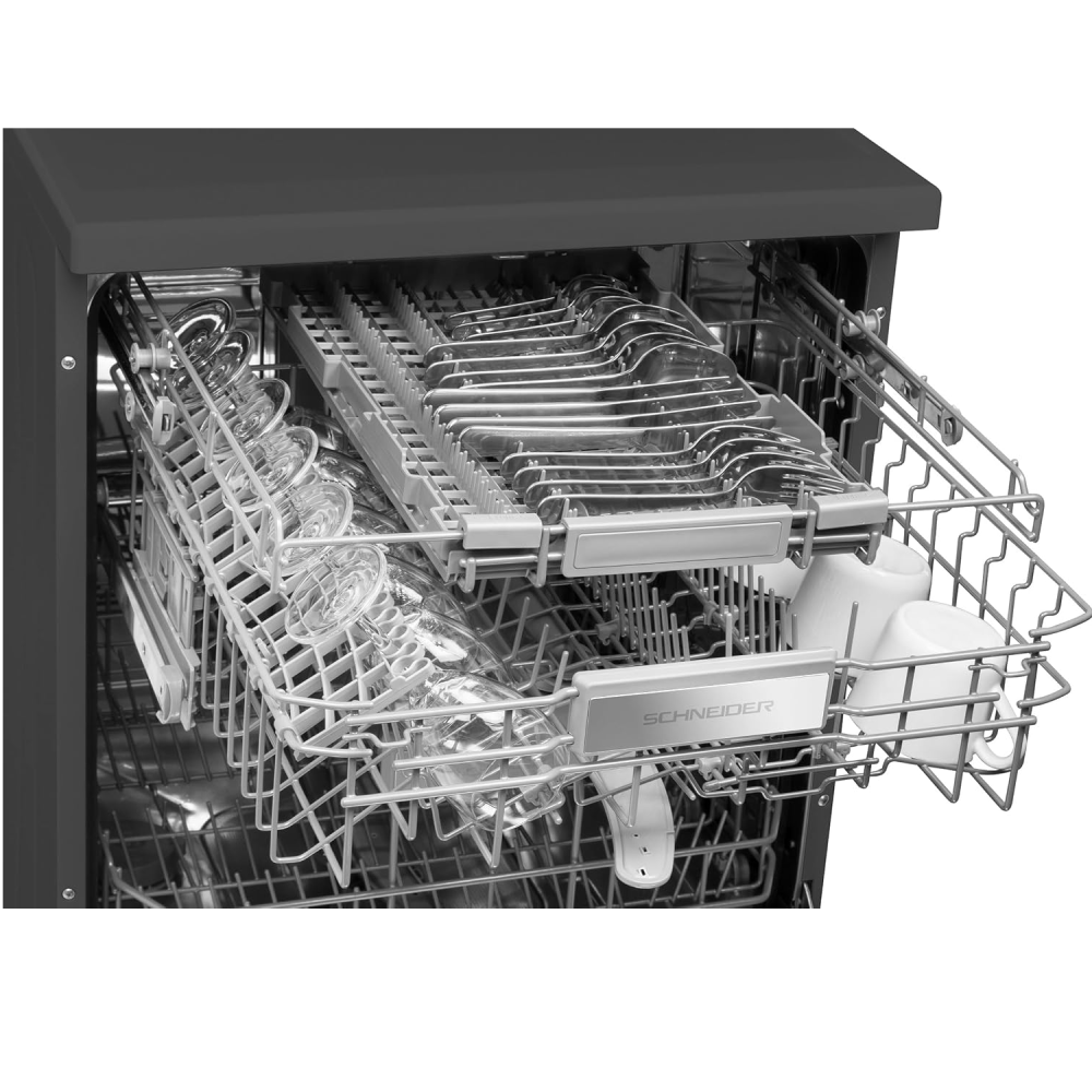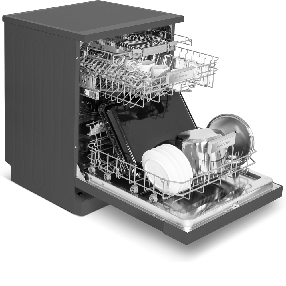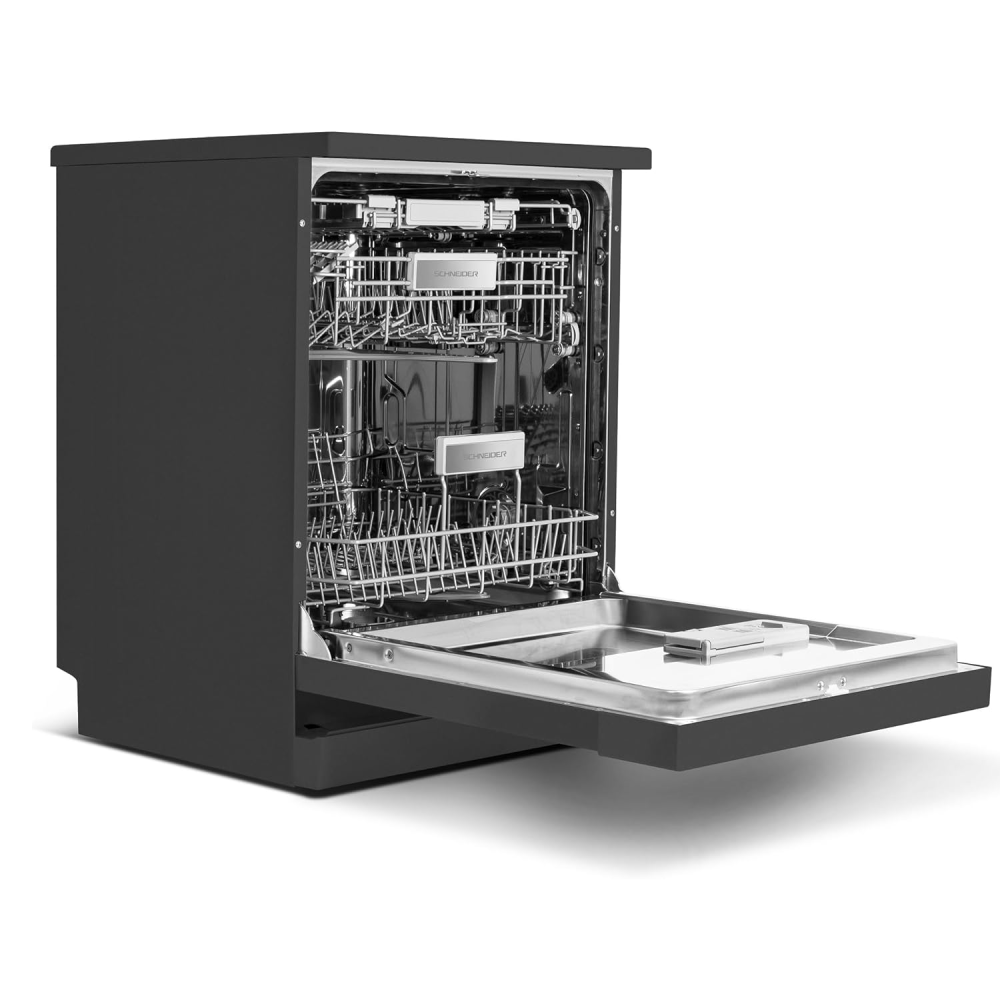 Ce lave-vaisselle élégant de 60 cm de large arbore une finition sophistiquée noir mat qui s'intégrera parfaitement aux designs de cuisine modernes. Oubliez l'acier inoxydable encombrant – ce lave-vaisselle ajoute une touche d'élégance discrète. Mais la beauté n'est pas tout ! Le lave-vaisselle Schneider peut accueillir confortablement jusqu'à 15 couverts, ce qui le rend idéal pour les familles ou ceux qui reçoivent souvent des invités.