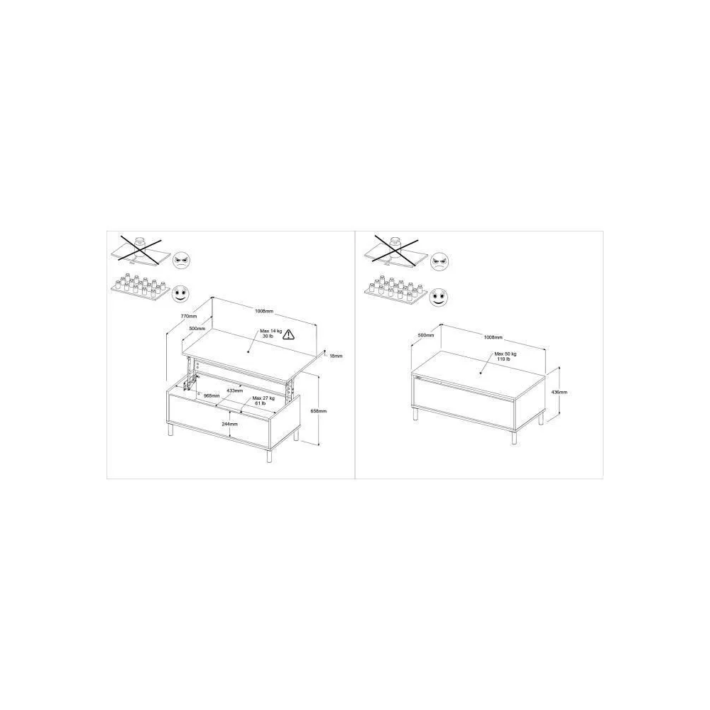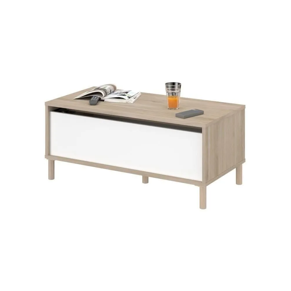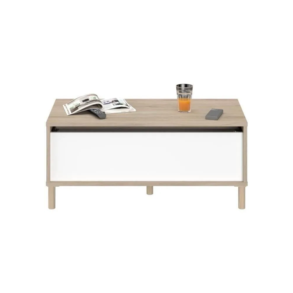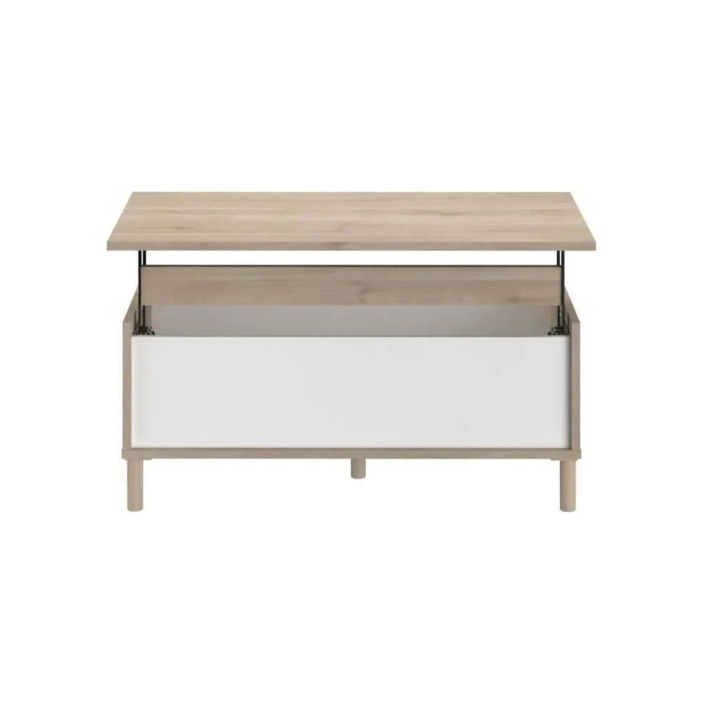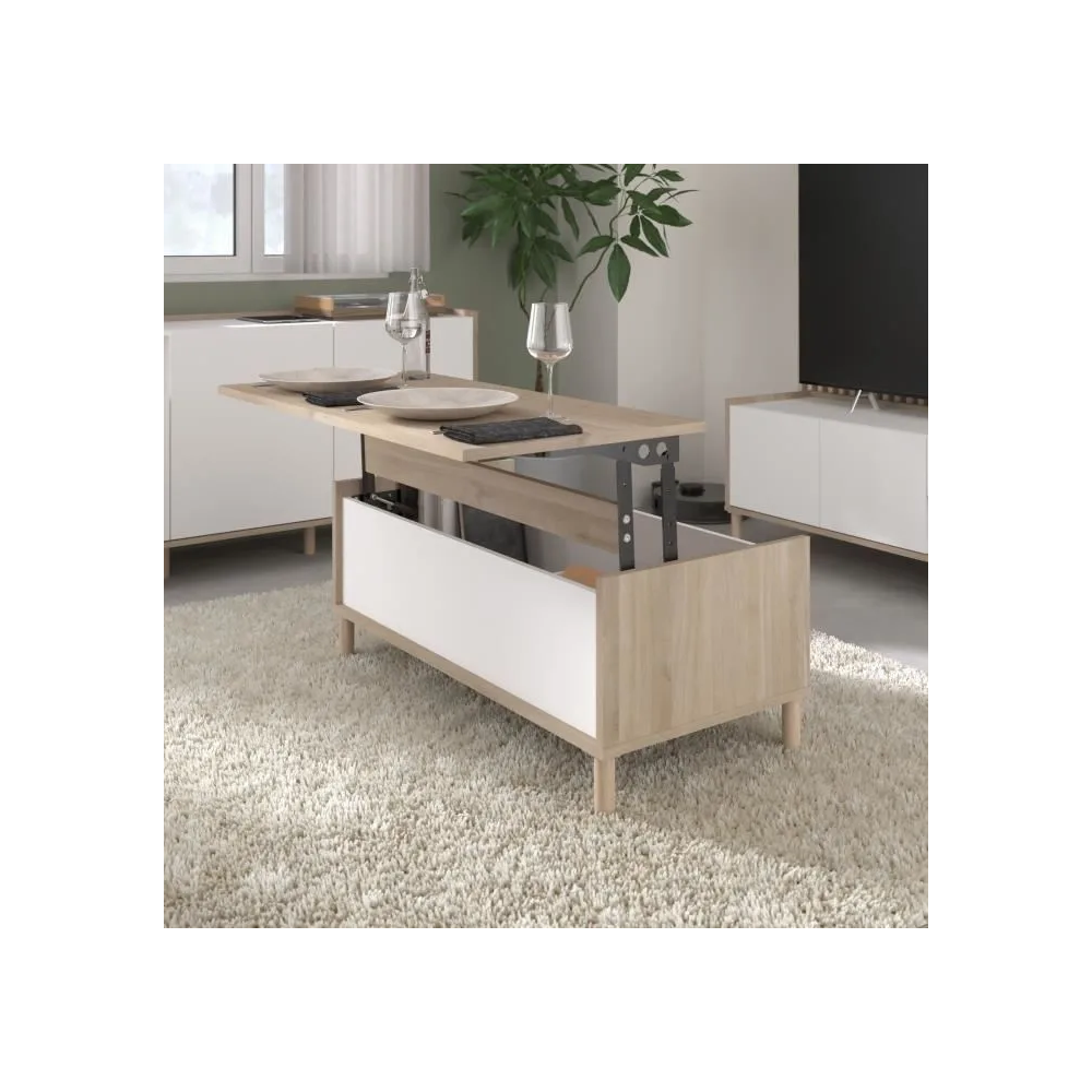 Découvrez la polyvalence de la TABLE BASSE MORPHOS, un ajout magnifique à tout espace de vie. Cette table basse en chêne blanc n'est pas seulement belle ; elle dispose astucieusement d'un mécanisme de plateau relevable, révélant un rangement caché – parfait pour les télécommandes, les magazines et plus encore ! Mesurant 110x45x50cm, sa taille compacte convient aussi bien aux appartements qu'aux grandes maisons. Nous avons conçu cette table en pensant à la fois au style et à la praticité. Livrée en deux colis pratiques, l'assemblage est simple. Profitez d'un salon sans encombrement avec cette table basse avec rangement élégante et fonctionnelle. C'est plus que des meubles ; c'est la vie intelligente.